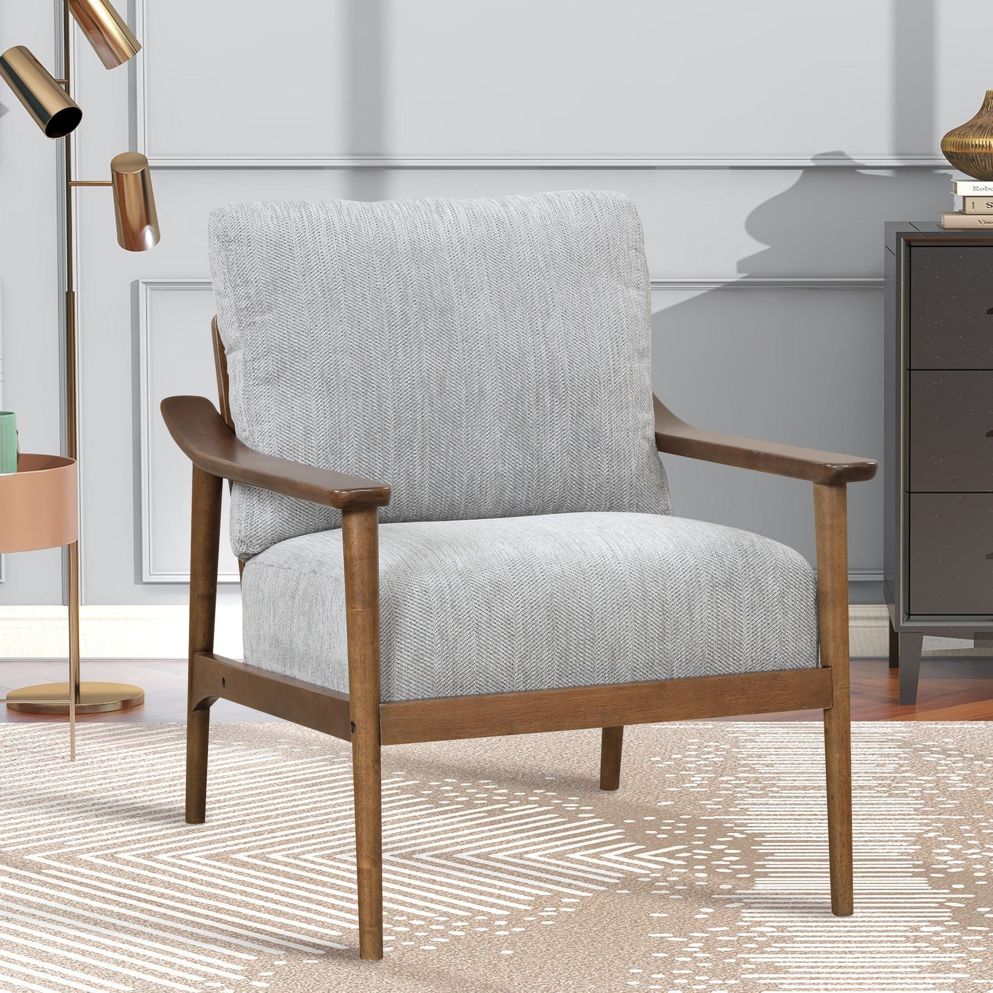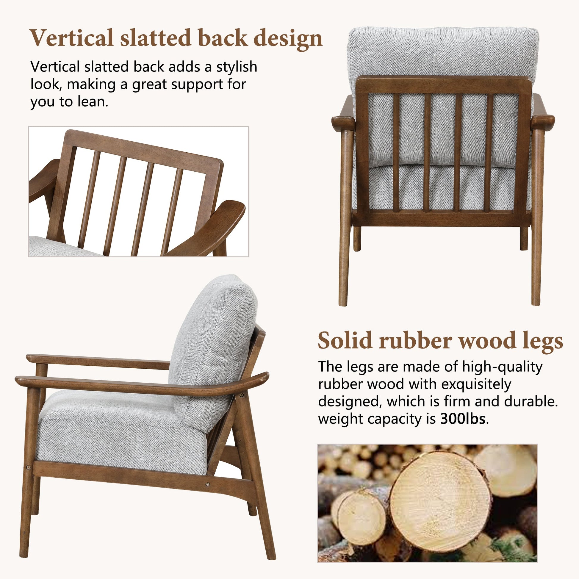 Linen Upholsterd Accent Chair Arm Chair Set of 1 with Vertical Slatted Back