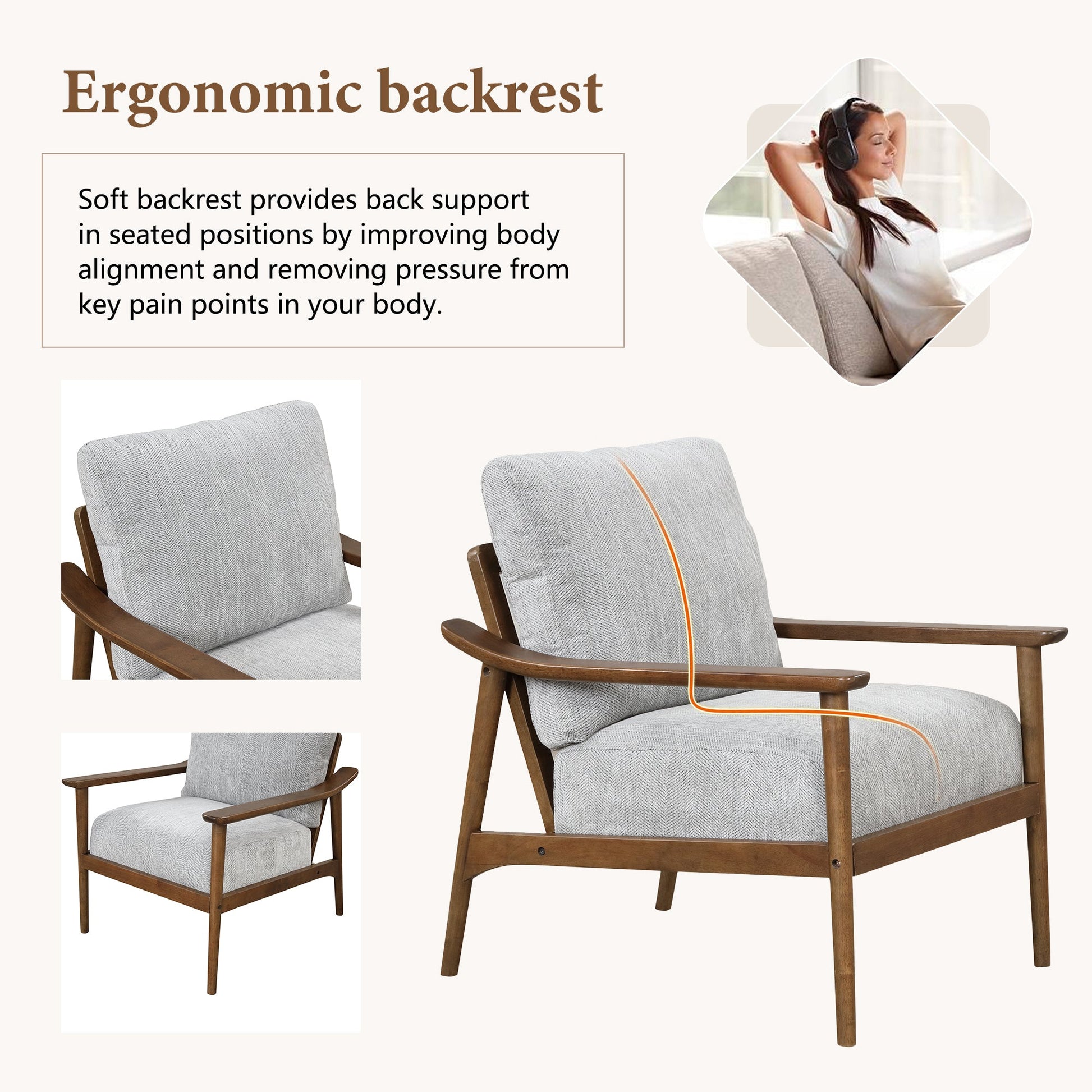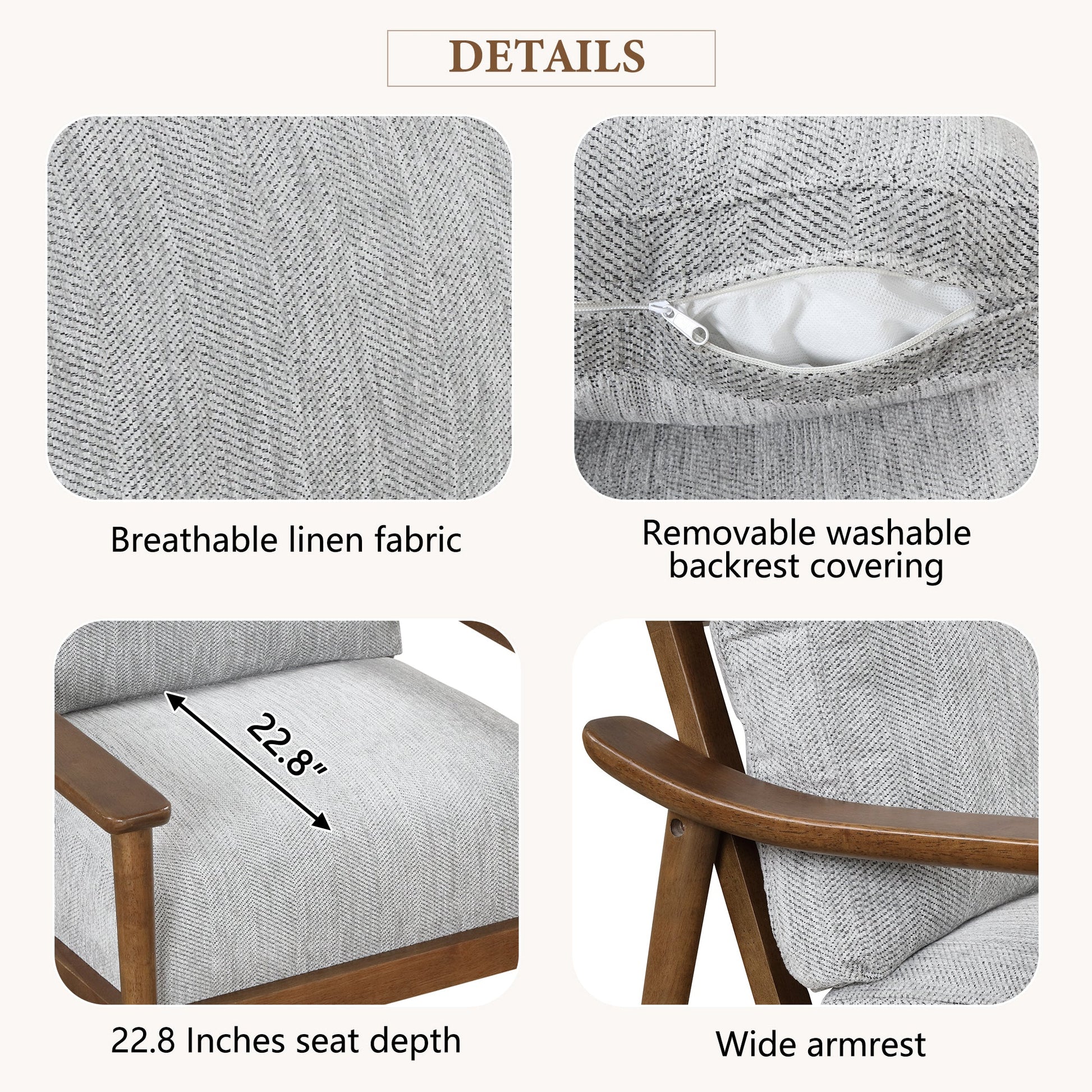 This leisure chair is covered by linen fabric upholstery, which provide a modern and stylish style to your room. The frame which adopt solid rubber wood provide durable, strong and long-term service enough to support up to 350 lbs. You can get an relaxation easily with our chair no matter if it is placed in the living room, bedroom.